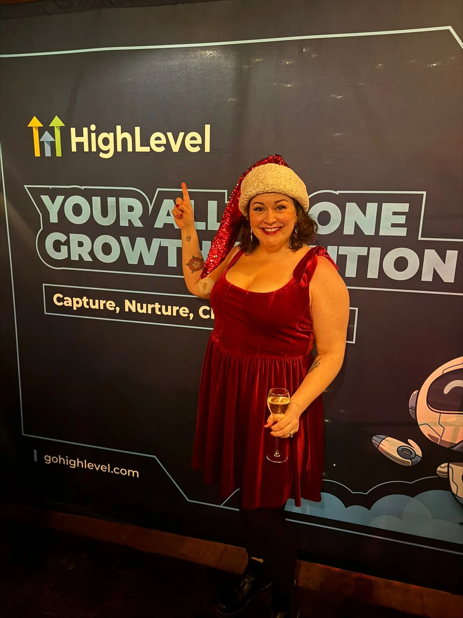 I consider how “dressy” I feel like being. I usually often then peruse what I have that’s red, since it’s my brand colour AND my personal favourite, but I don’t always go red and if I really feel like wearing something else then I’ll just accessorize with red, or even just let my lips be the accessory as I did this time. I knew people would be having fun with their outfits at this one, and this sparkly dress (which I already had) felt right.